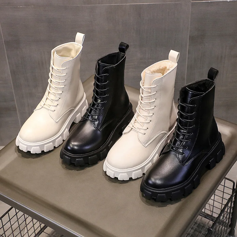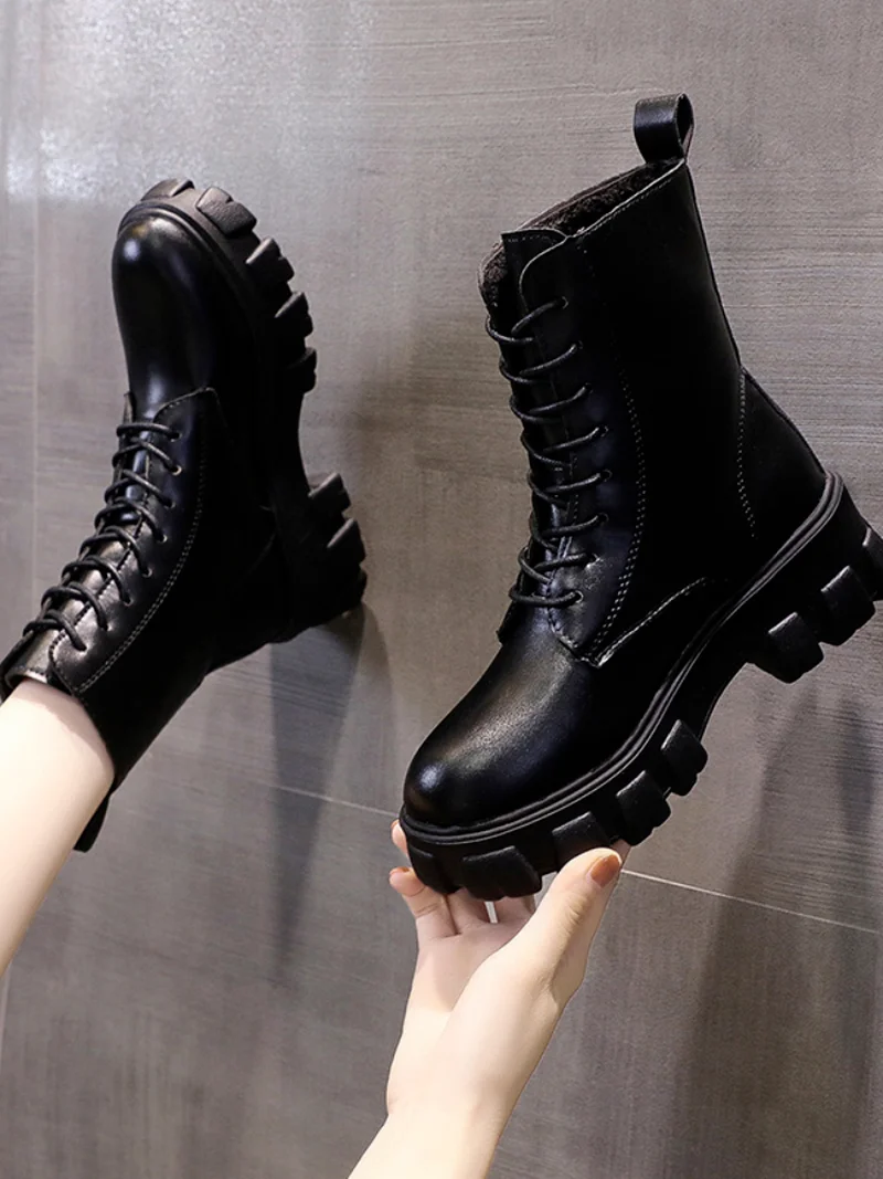 Ботинки женские из искусственной кожи, на толстой подошве, Осень-зима 2021