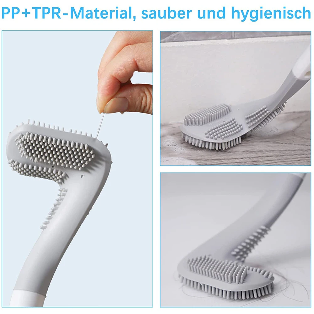 [Щетка для унитаза с длинной ручкой]: щетка для унитаза имеет уникальный дизайн и имеет форму гольф-клуба. В сравнении с другими кистями вы можете чистить углы, не нажимая на головку кисти. Это также предотвращает случайное прикосновение вашей руки к сидению унитаза.