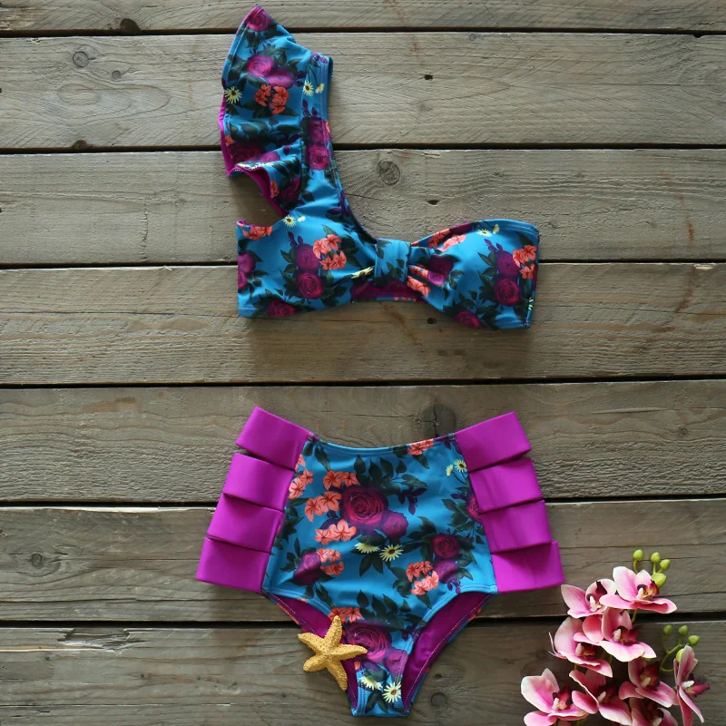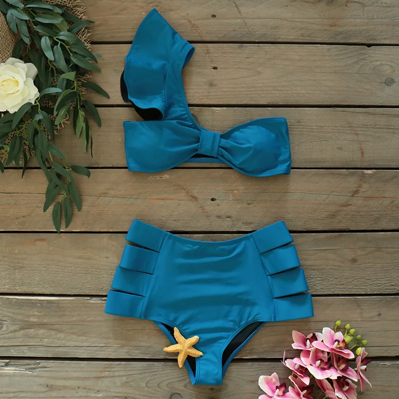 Женский комплект с рюшами, белый купальник с завышенной талией, сексуальная летняя одежда, бикини с высоким плечом, пляжный купальник, бикини пуш-ап