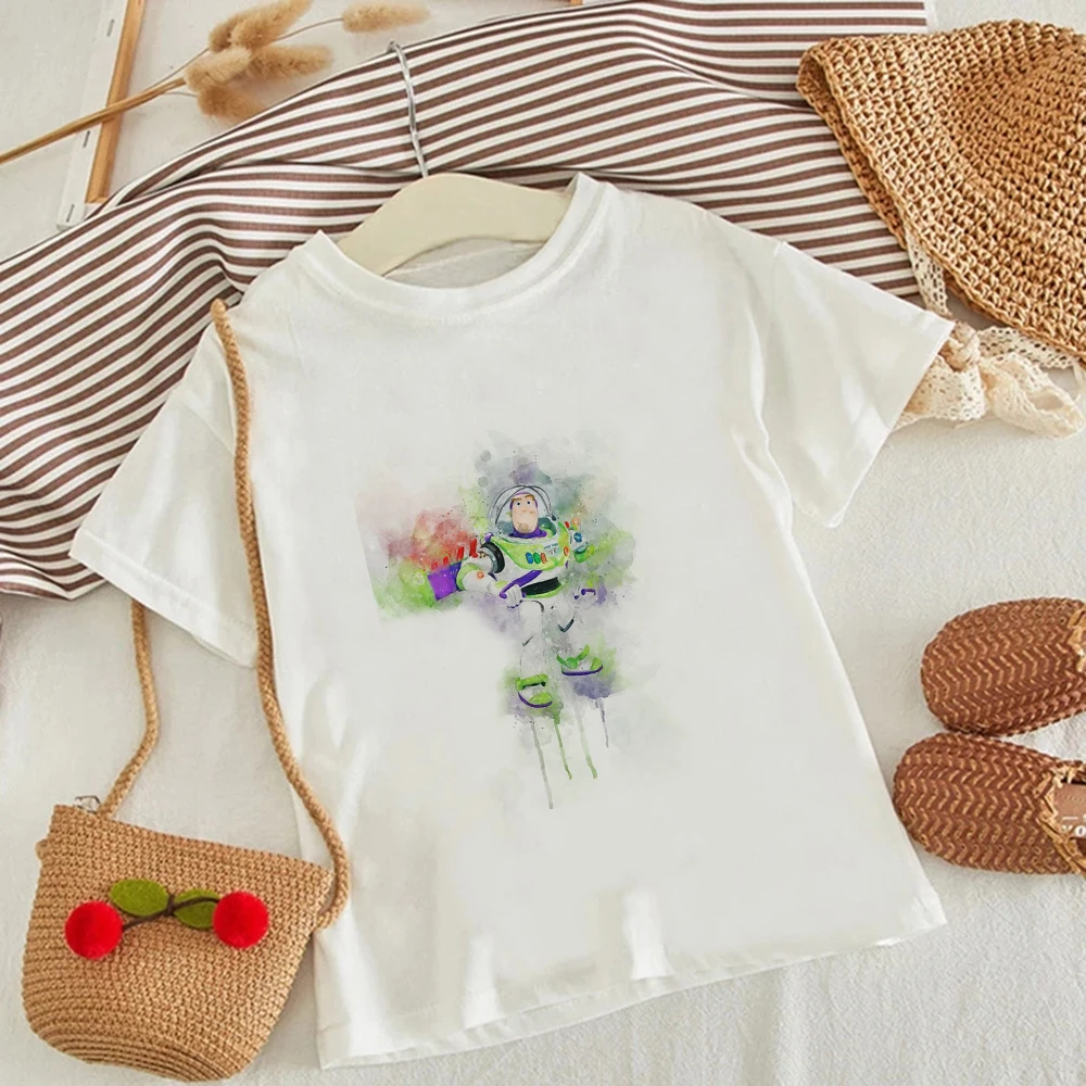 Футболка для девочек Disney Toy Story Buzz Lightyear, футболка с принтом, детские летние топы с короткими рукавами в стиле Харадзюку, удобные