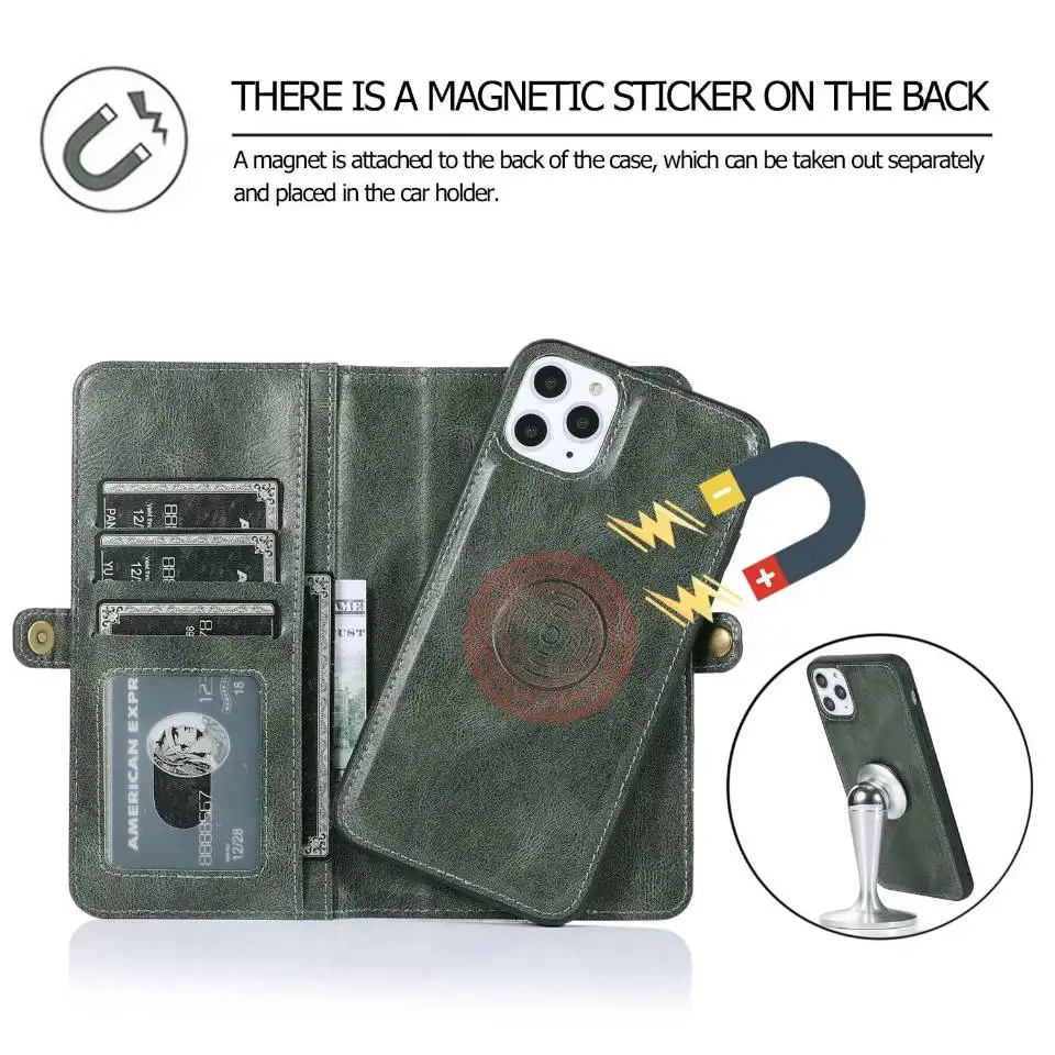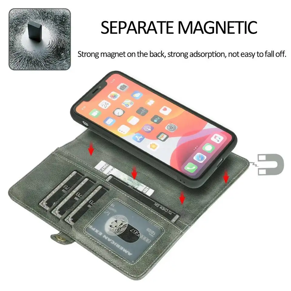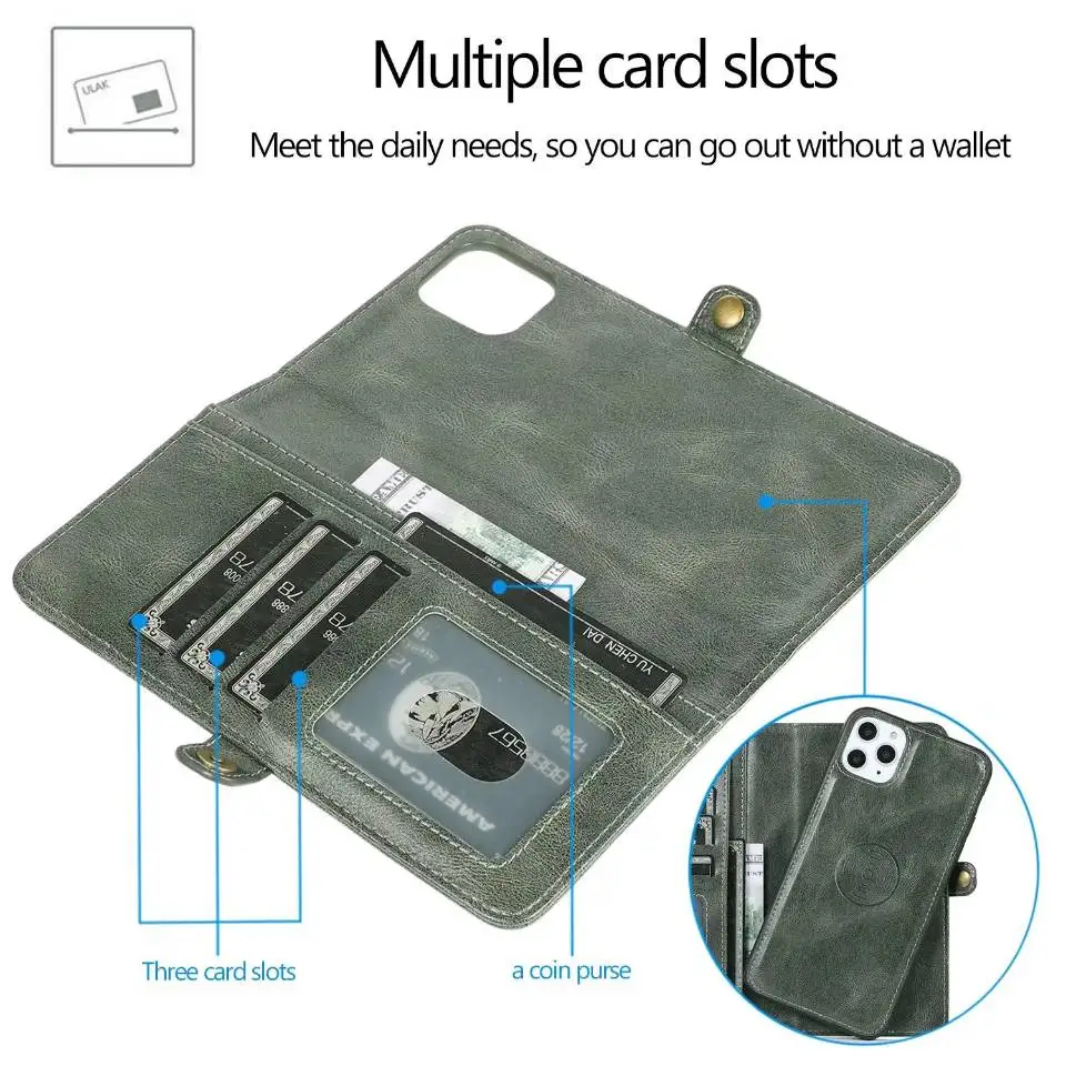 Откидной Чехол-бумажник для iPhone 12, съемный магнитный кожаный че...