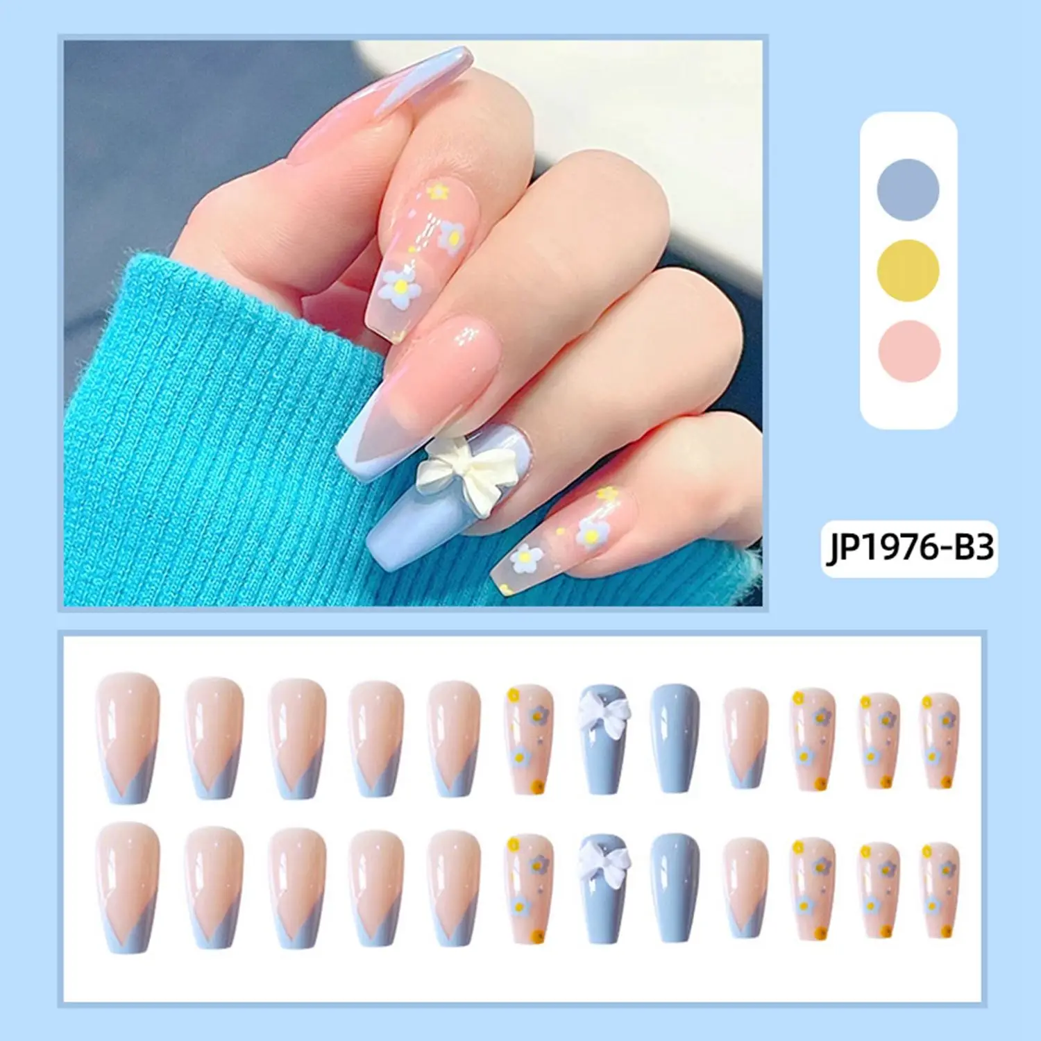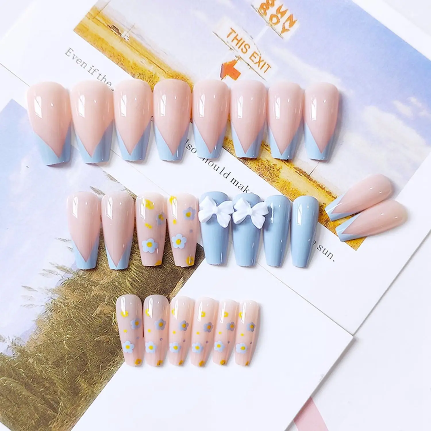 Накладные ногти с длинным гробным цветком, съемные накладные ногти синего, розового, балерины, французского цвета, накладные ногти с полным покрытием, накладные ногти, 24 шт.