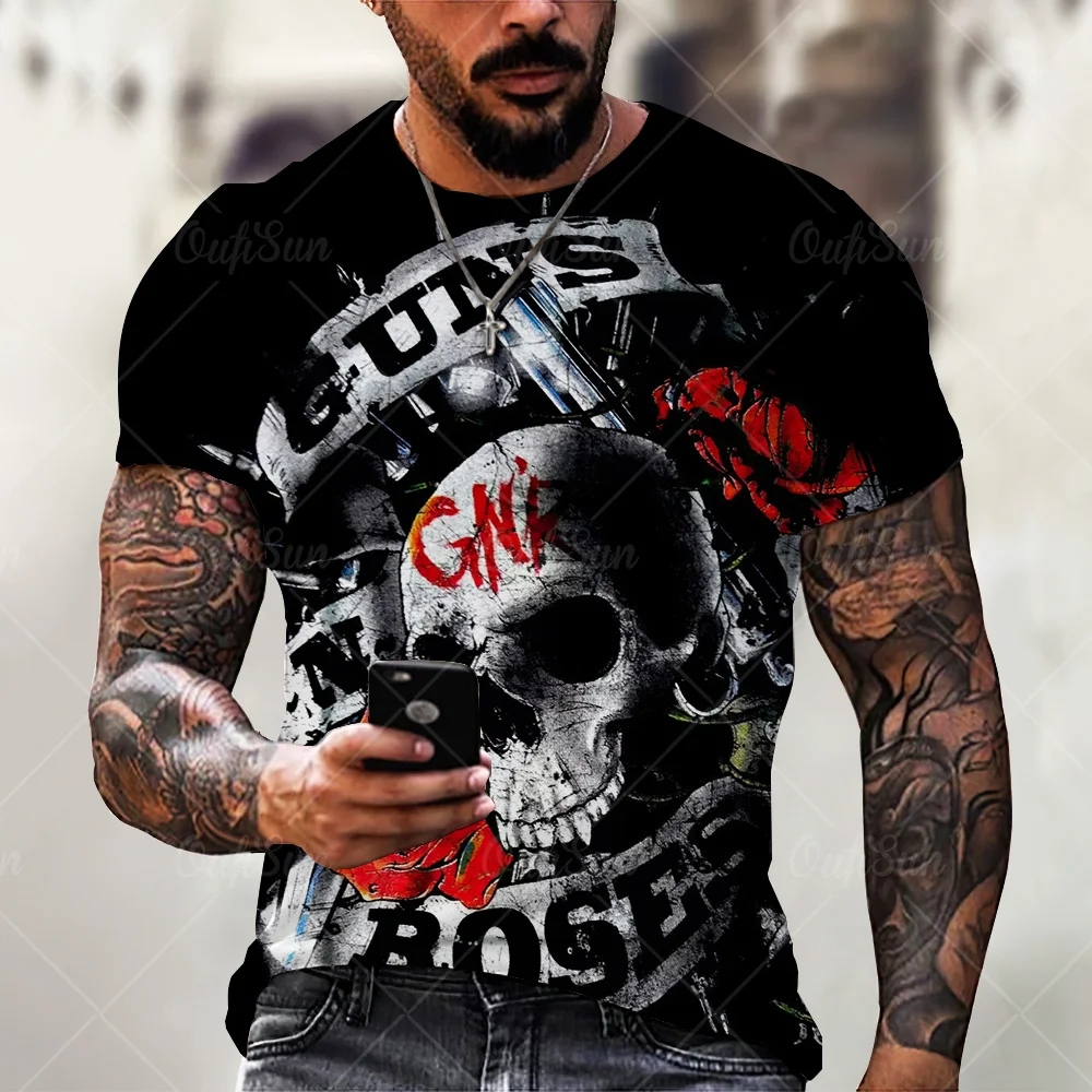 Футболка мужская оверсайз с круглым вырезом, повседневная тенниска с принтом черепа, майка с короткими рукавами в стиле хип-хоп, уличная одежда, лето