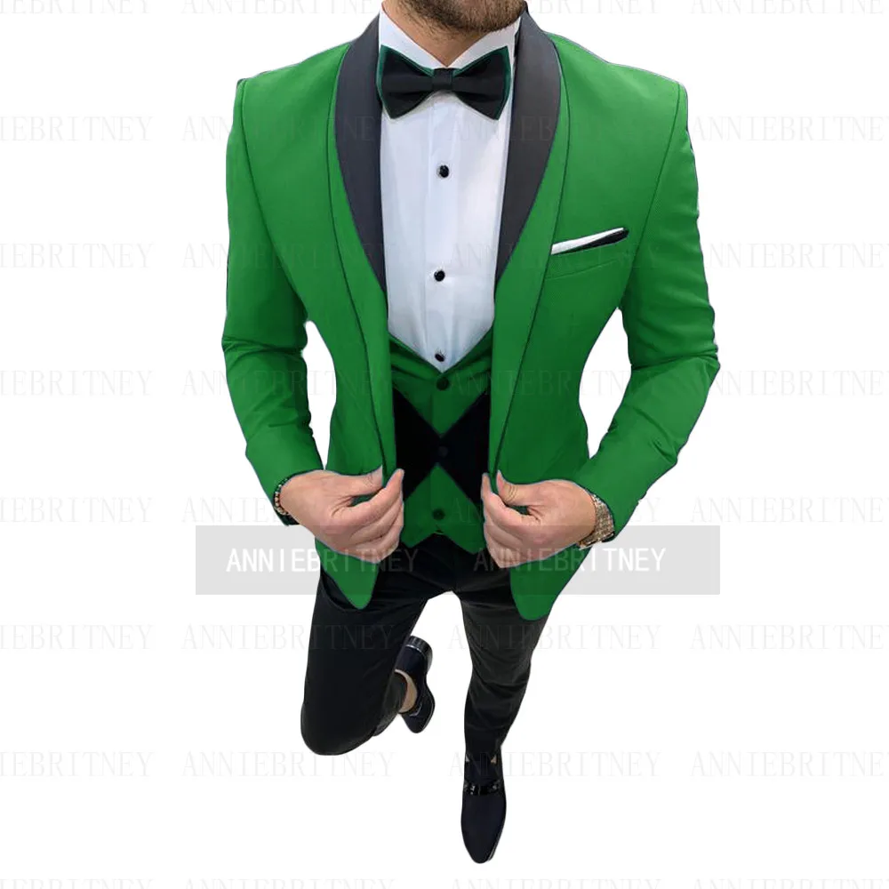 2021 новый свадебный мужской костюм, облегающий Зеленый стильный пиджак для жениха Вечерние вечернее платье, смокинг, Блейзер, жилет, брюки