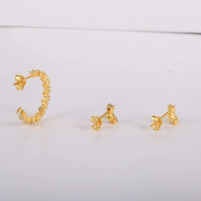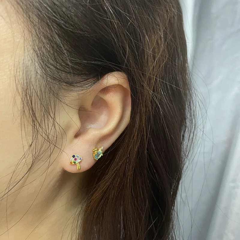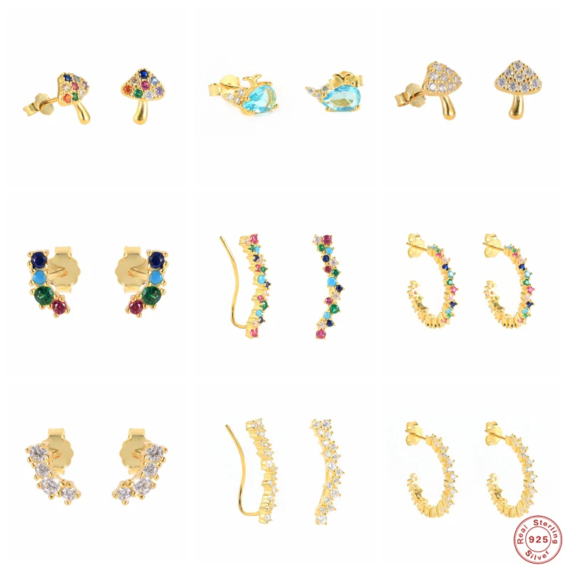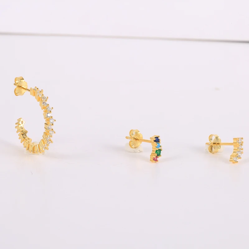 Серьги-гвоздики женские из серебра 925 пробы с радужным цирконием