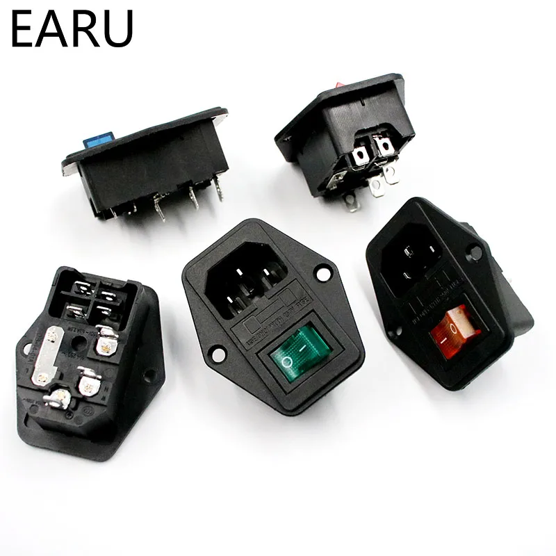 Высококачественная Черная, красная, 10 А переменного тока, 250 В, 3-контактная розетка с держателем предохранителя, клавишный переключатель, новый шнур питания переменного тока, розетка