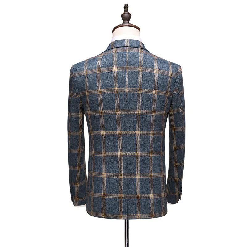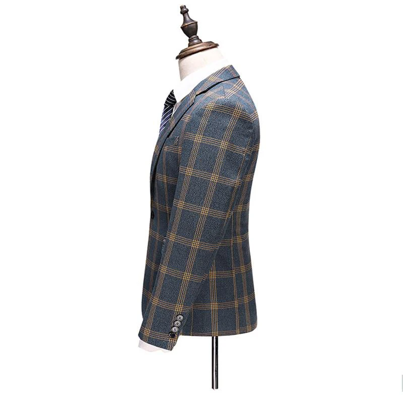 Мужской костюм из трех предметов (пиджак + брюки + жилет) весна-осень новый мужской деловой клетчатый Повседневный костюм для выпусквечерние вечера