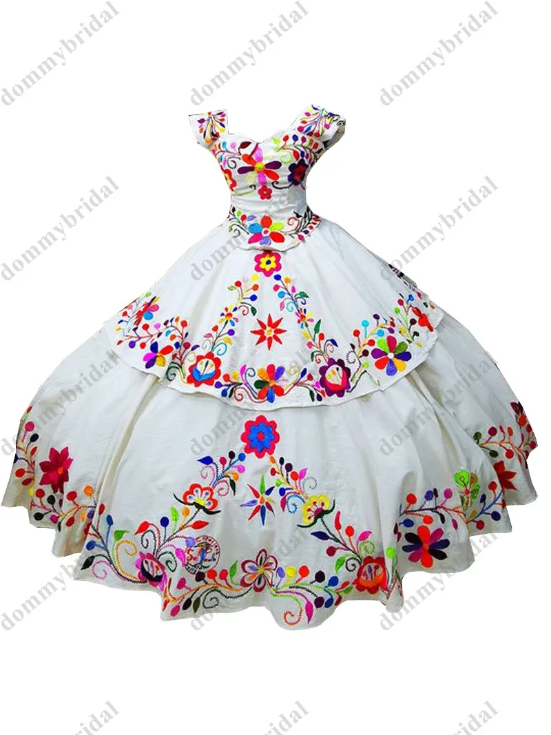 2022 сдержанные красочные вышитые цветами белые мексиканские платья Quinceanera бальное платье Charra XV Vestido De Satin с рукавом для выпускного вечера