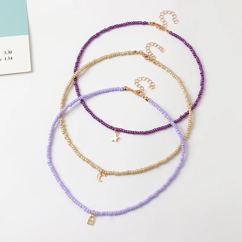 Ожерелье из простых бусин, небольшое ожерелье из ниток, свежие конфетных цветов, ожерелье из сплава, ожерелье с подвеской в виде звезды и Луны, подарок