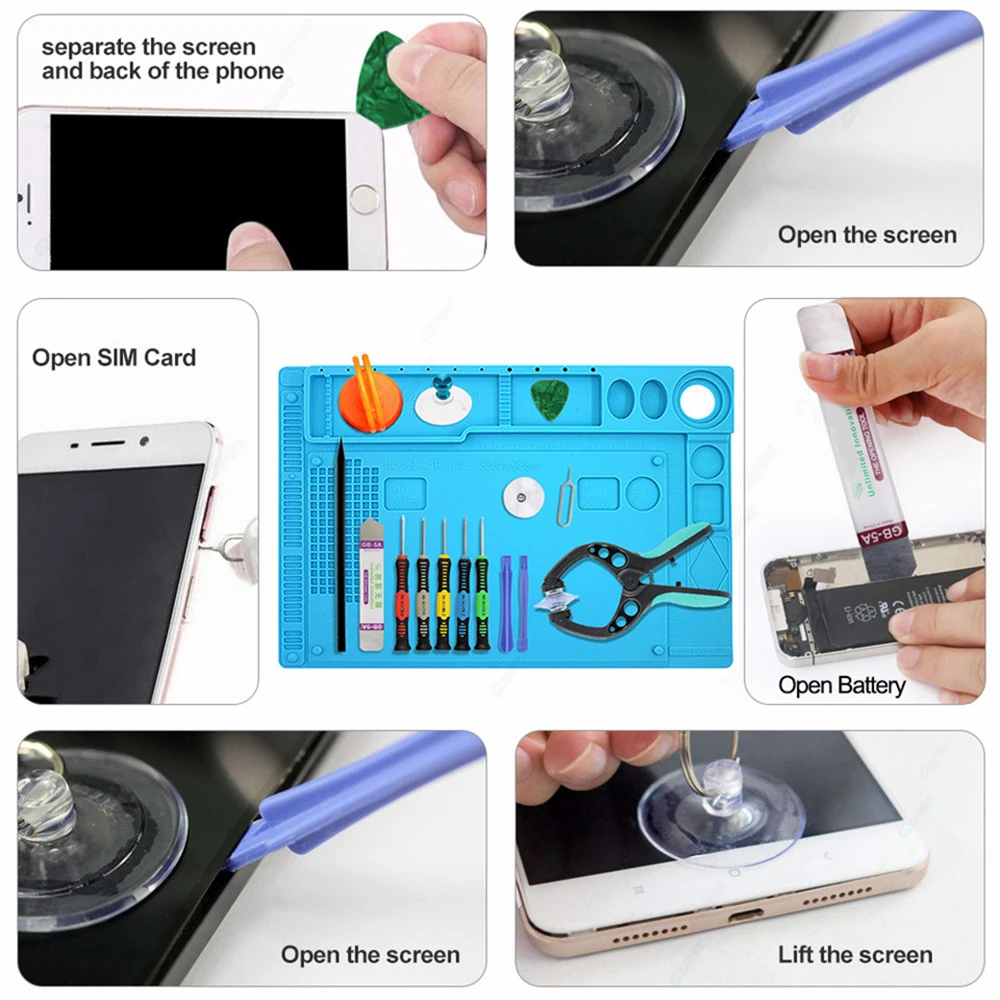 Набор инструментов для ремонта сотовых телефонов 15 в 1, профессиональный теплоизоляционный коврик, отвертка, набор ручных инструментов для ремонта планшетов Samsung S7 S6
