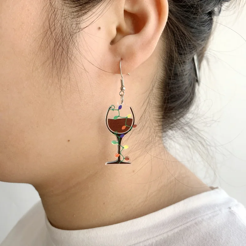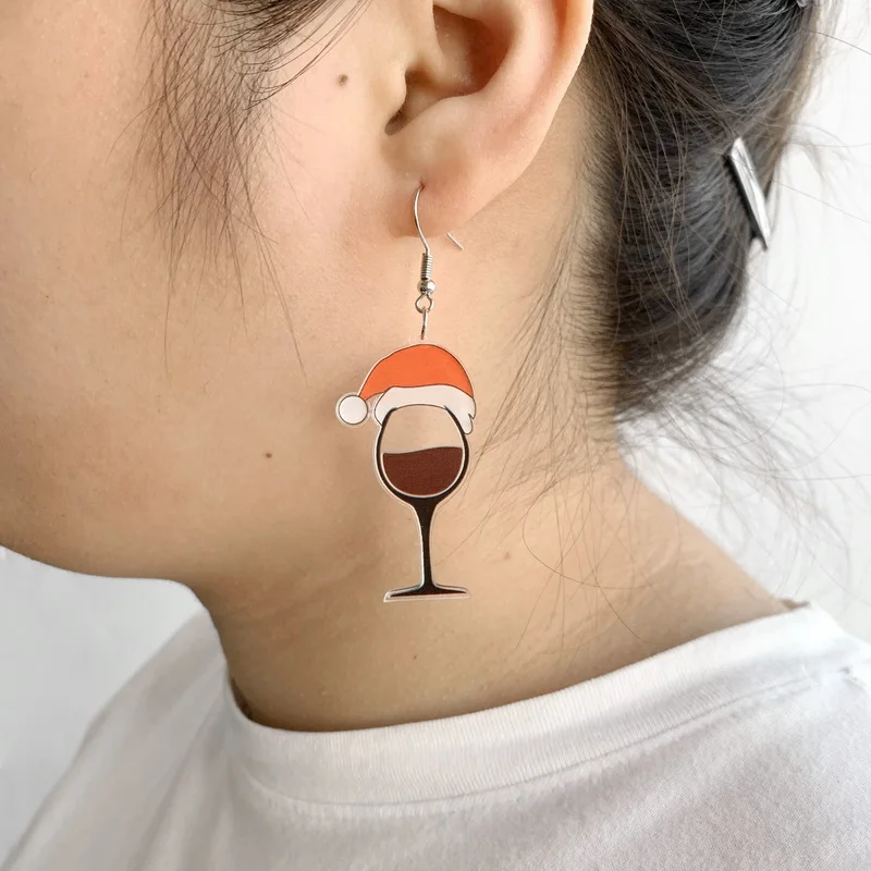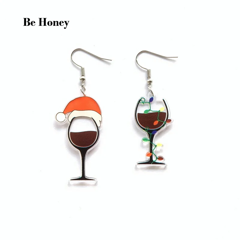 2021 креативные рождевечерние праздничные бокалы для вина с рождественской шапкой и красочными огнями, акриловые Висячие серьги для женщин, Забавный праздничный подарок