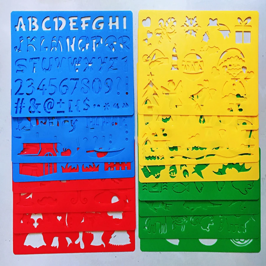 Материал: пластикПрименимые люди: унисексСостояние на 100% абсолютно новыйФункция: детские игрушки для рисованияДетская полые трафарет для рисования с использованием 0,5 мм PP материал, высокое качество и безопасность гарантирована, чистые цвета, в общей сложности пять различных цветов, красный, желтый, синий, зеленый, фиолетовый, милые узоры, глубоко любимый детьми, может тренироваться руками ребенка, это отличный подарок на выбор.