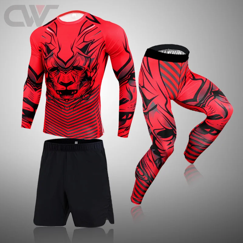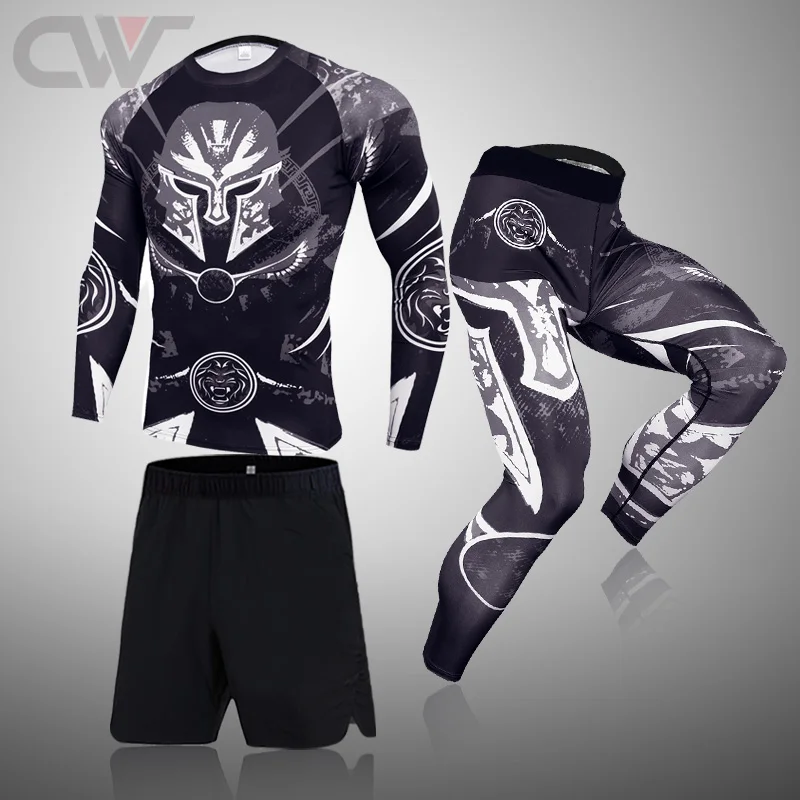 Трико мужское Спортивное, 3 шт.компл., для фитнеса, эластичное, быстросохнущее, для баскетбола, ММА, тренажерного зала, бега