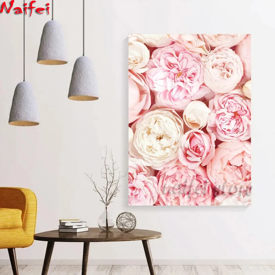 Полный квадратный круглый дрель 5d цветок нежные лепестки Розовый пион Алмазная Вышивка Сделай Сам алмазная живопись набор крестиков