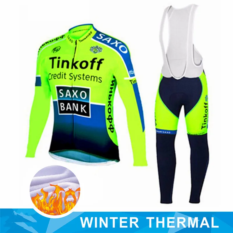 Зимний флисовый комплект велосипедной одежды Tinkoff Saxo Bank, одежда для езды на велосипеде