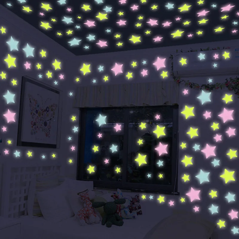100 шт. 3D звезды настенные наклейки светящиеся флуоресцентные наст...