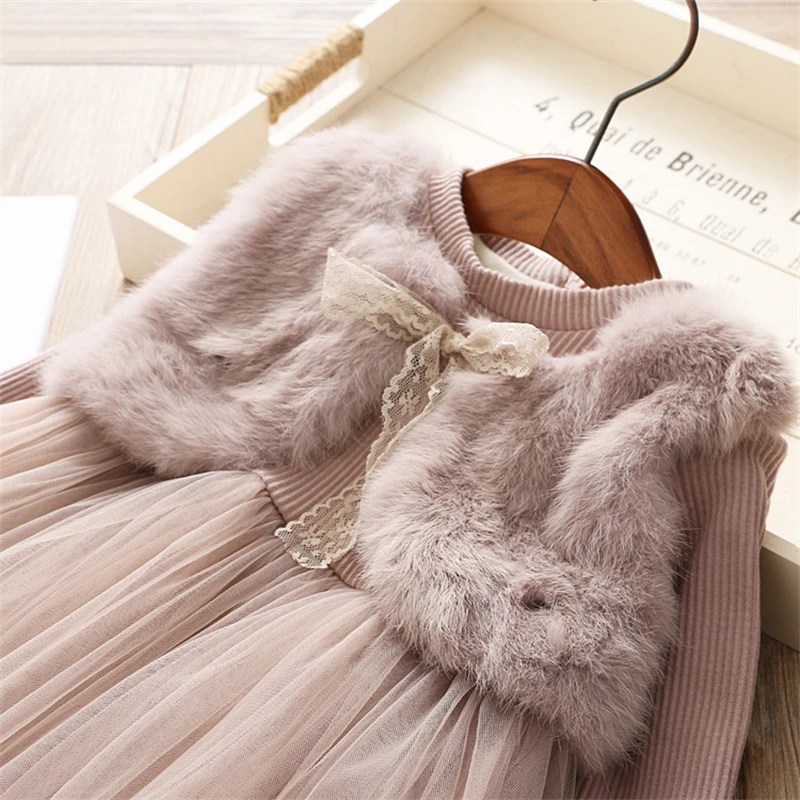 Платье для девочек, теплые зимние платья с мехом на Рождество и осе...