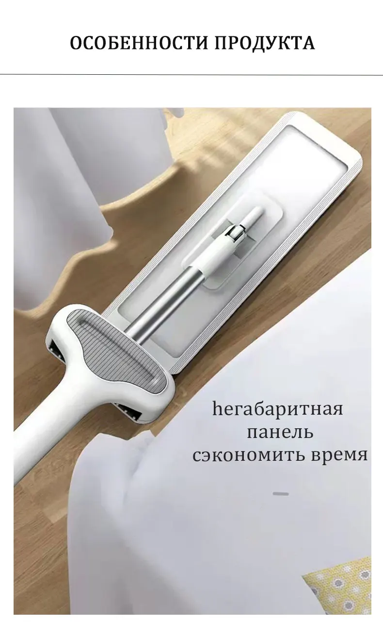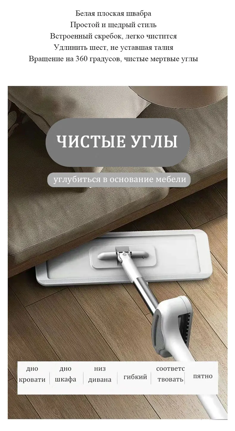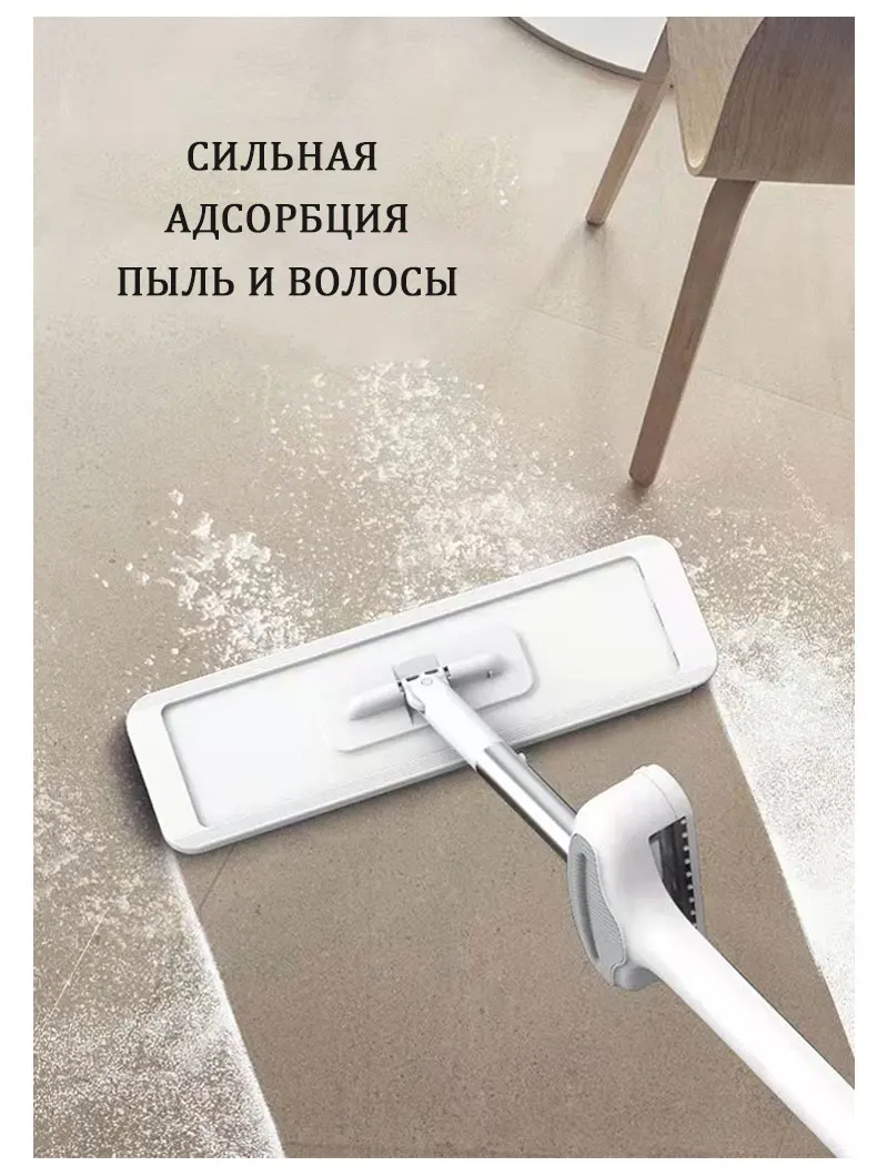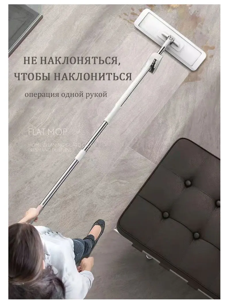 Швабра для пола плоская с заменяемой тканевой головкой, вращающаяся на 360 градусов