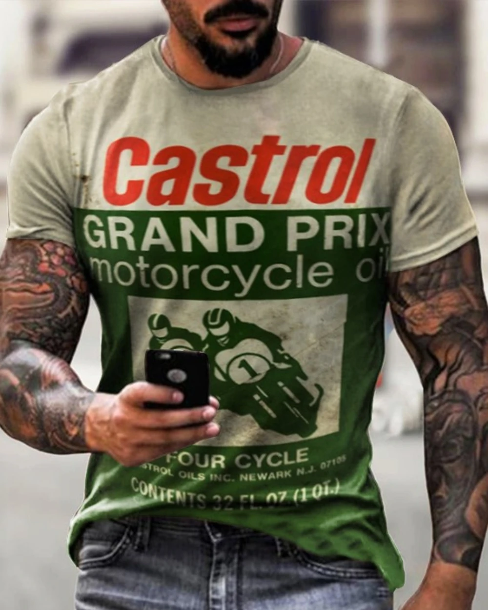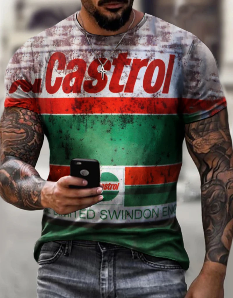 Мужская Винтажная Футболка CASTROL, Классическая Ретро футболка с п...