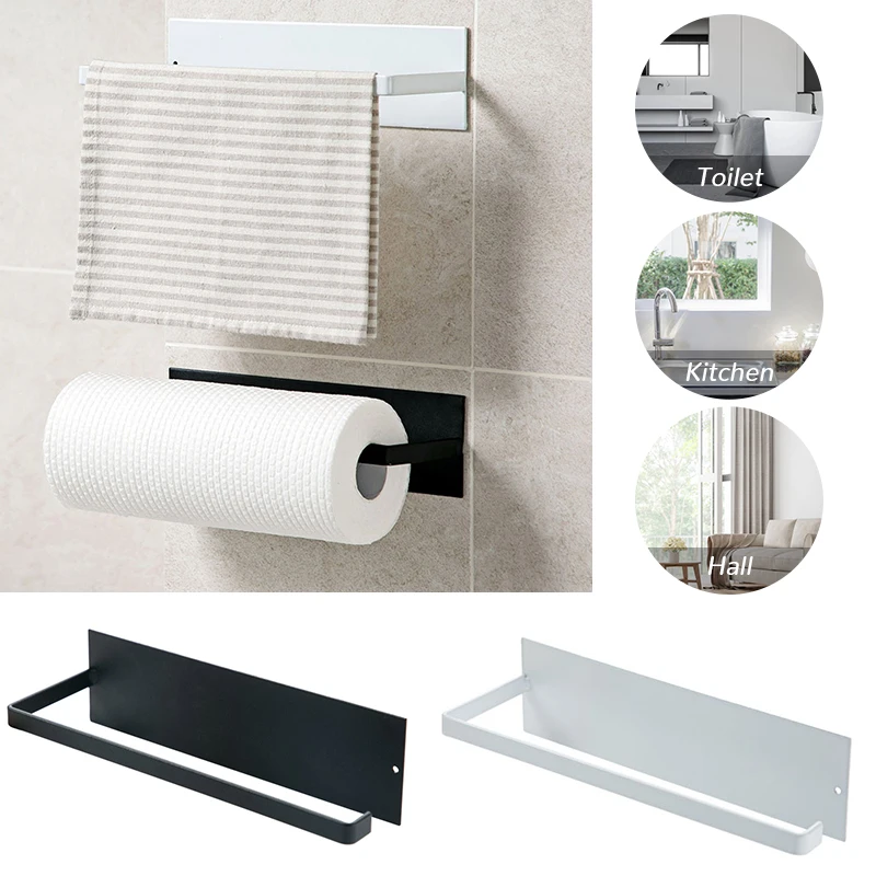 Kitchen Free Punch Self Adhesive Roll Paper Toilet Towel Holder