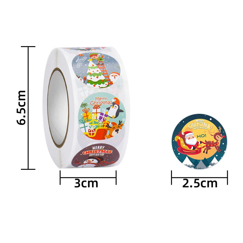 500 шт./рулон рождественских наклеек
