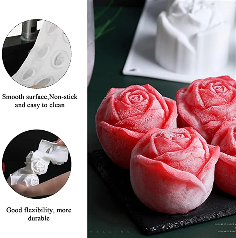 Силиконовая форма для торта, в форме розы, 3D, инструменты для свадьбы, для муссов и десертов, для конфет выпечки, форма для льда, свечей