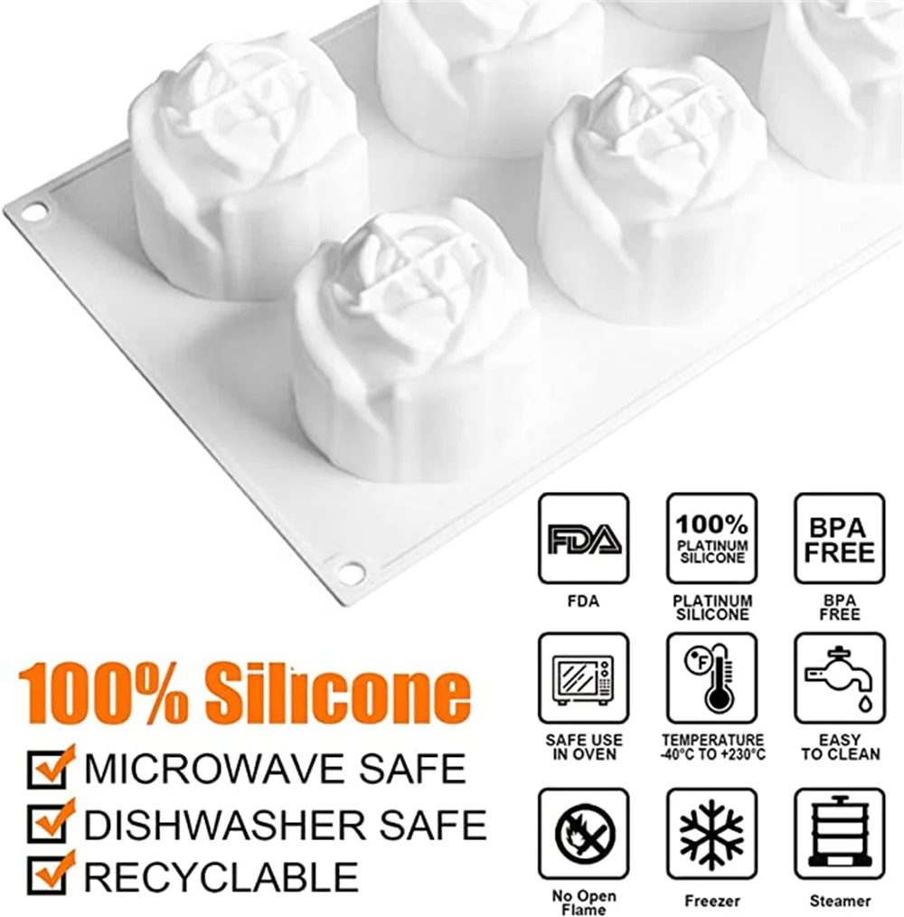 6 полости формы розовых цветов, силиконовая форма, ремесло, шоколад...