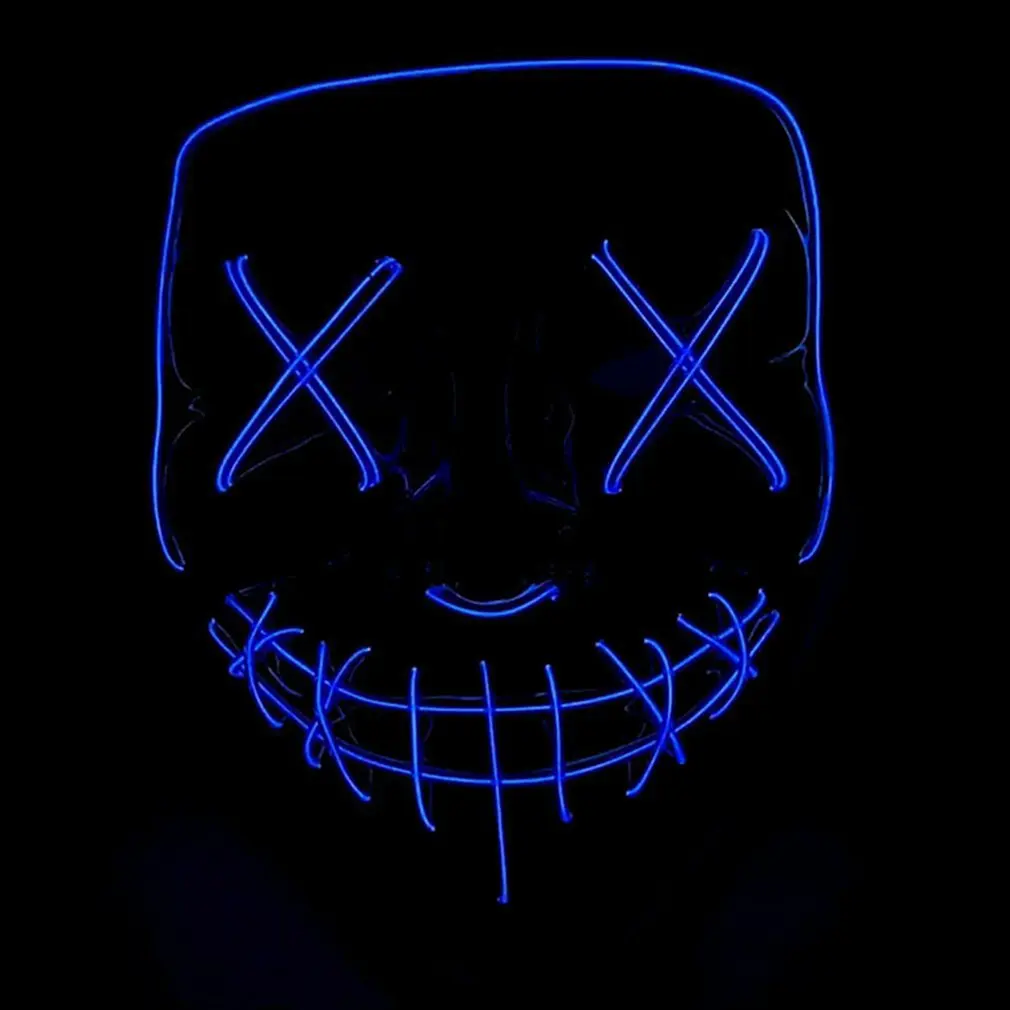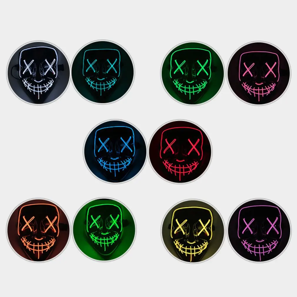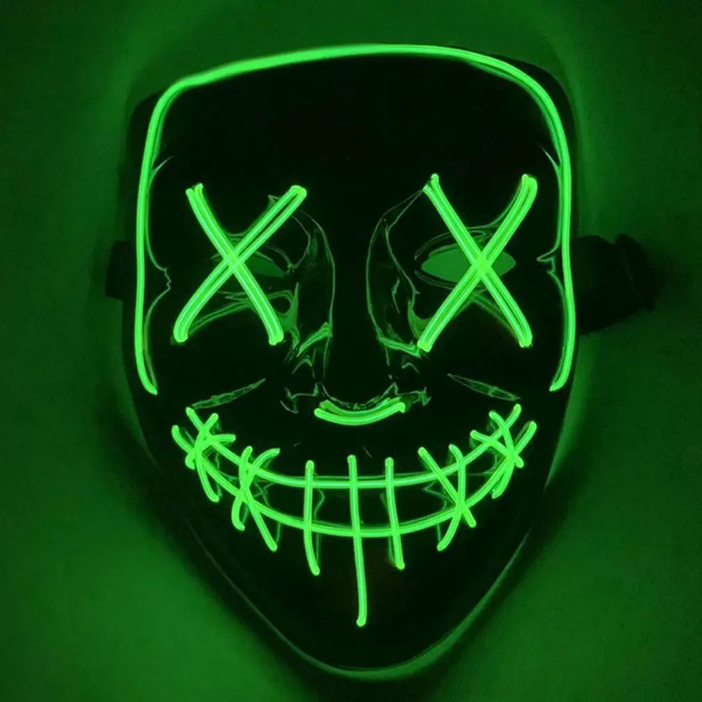Светодиодная маска для вечевечерние НКИ на Хэллоуин, маскарадные маски, неоновые маски, светящаяся страшная маска, светящаяся маска смешанных цветов