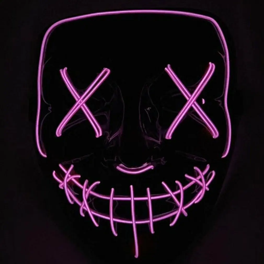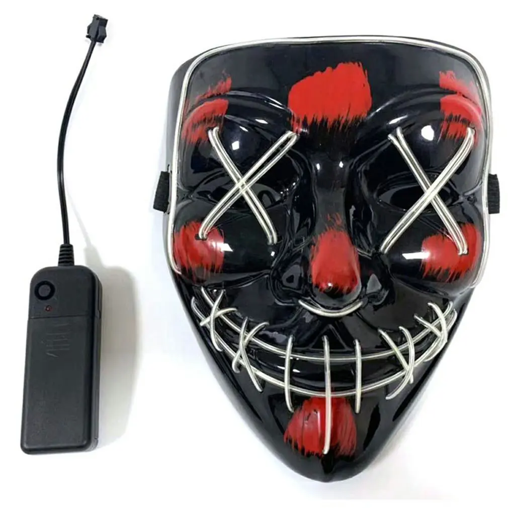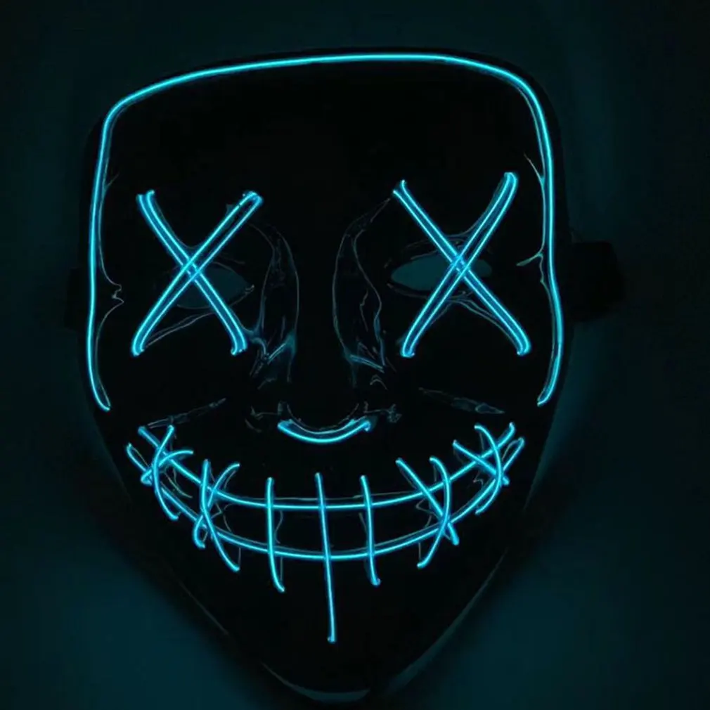 Светодиодная маска для вечевечерние НКИ на Хэллоуин, маскарадные маски, неоновые маски, светящаяся страшная маска, светящаяся маска смешанных цветов
