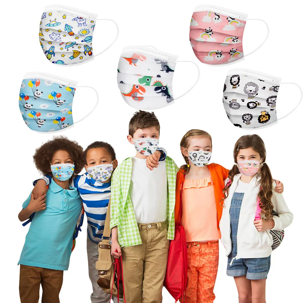 50 шт., детские маски для лица, одноразовые маски для лица с принто...