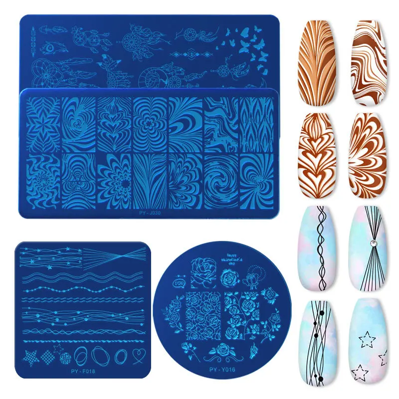 Фотопластины для ногтей с цветочным дизайном и листьями, абстрактный геометрический трафарет, инструменты для самостоятельной Печати из нержавеющей стали
