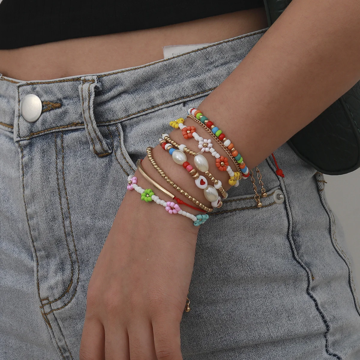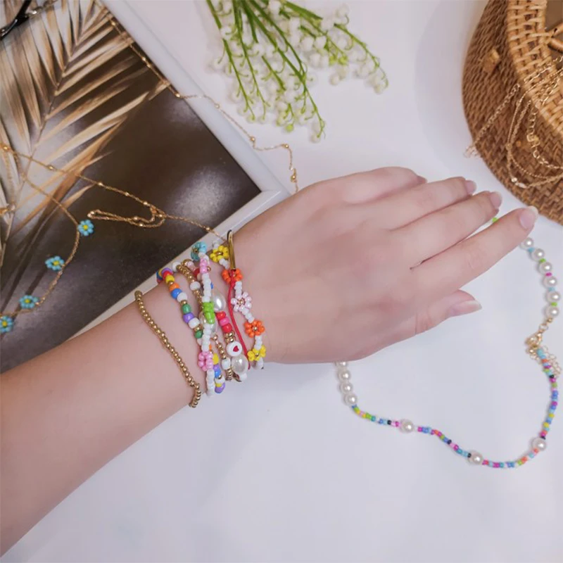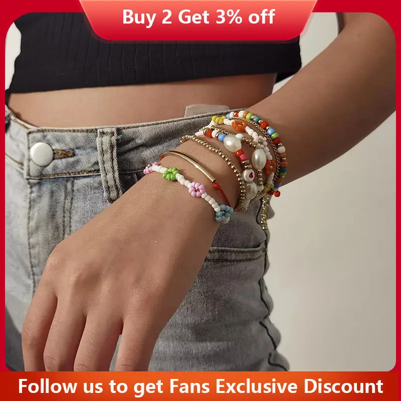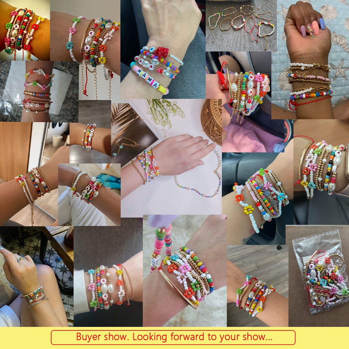 Женский Набор браслетов, ювелирные изделия Y2k, богемный этнический браслет из бисера с буквами и жемчужинами, подарочные украшения, 2021