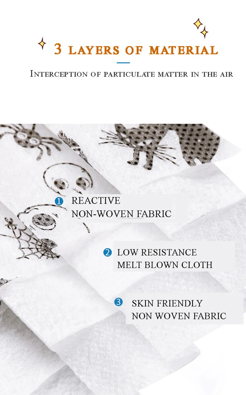 50 шт., одноразовые трехслойные маски для детей, из нетканого материала