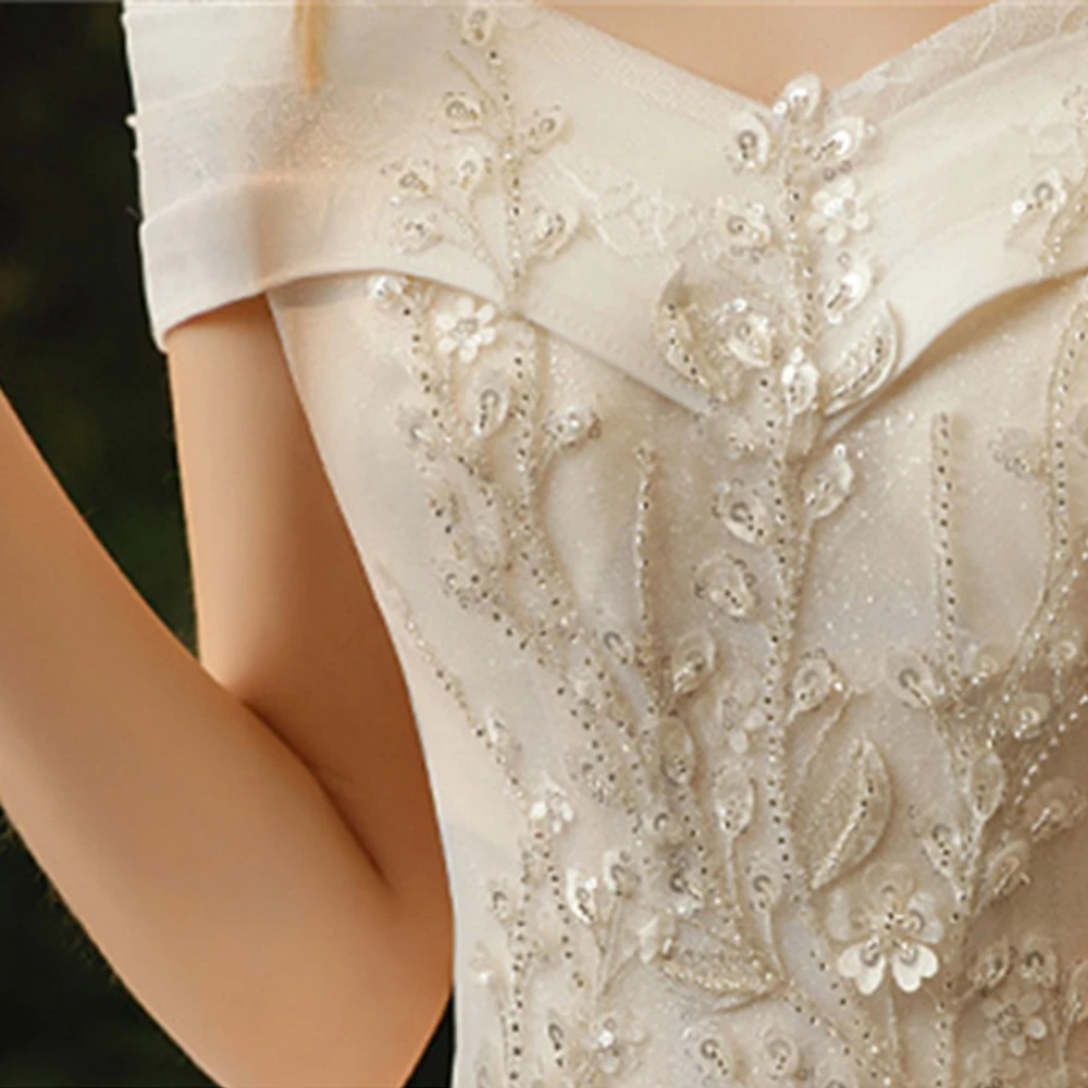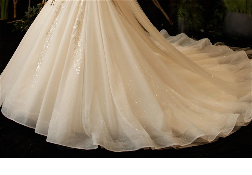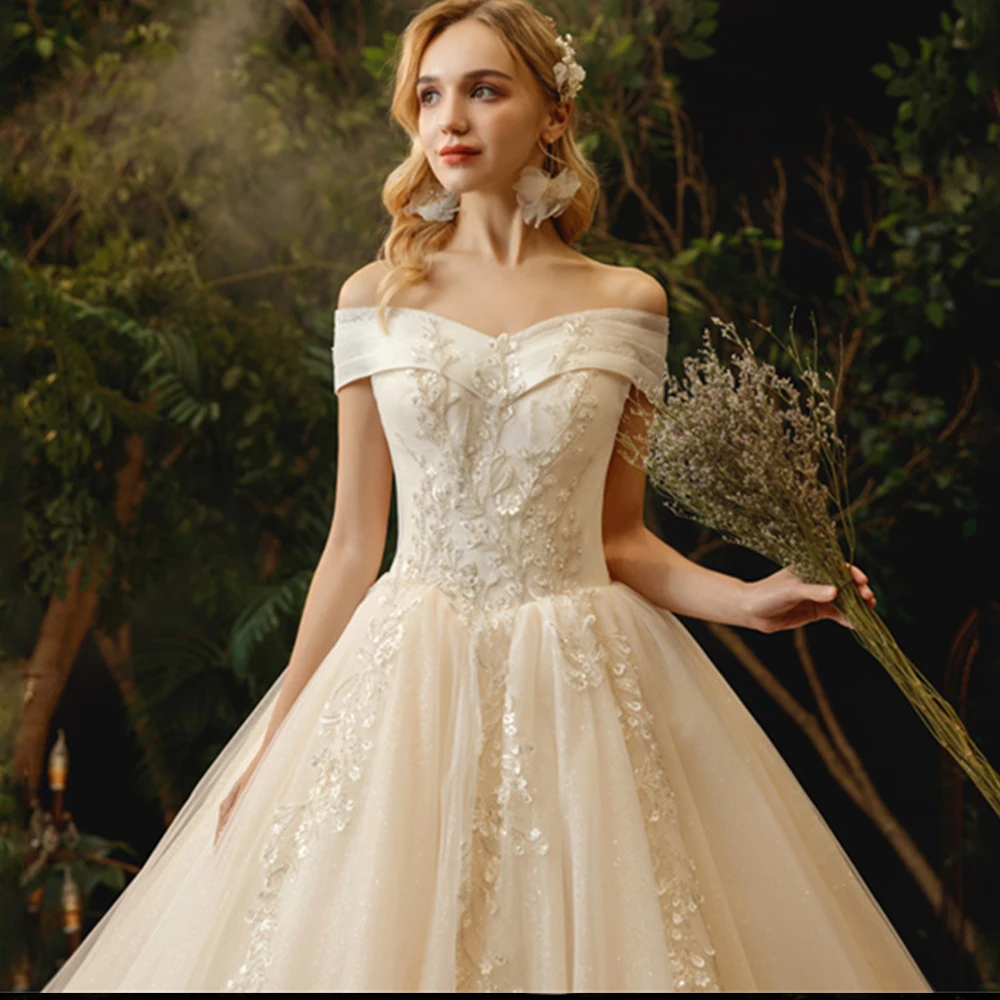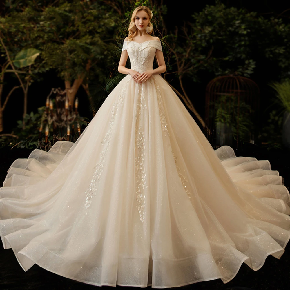 Свадебное платье принцессы Dioflyusa, кружевное Тюлевое платье с цветочным бисером и блестками, роскошное элегантное бальное платье цвета шампанского с вырезом лодочкой, 2021