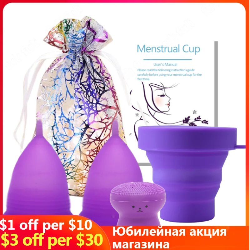 Медицинская силиконовая менструальная чашка Складная силиконовая чашка для чистки менструального периода чашка для женщин Менструальный коллектор и щетка для очистки лица