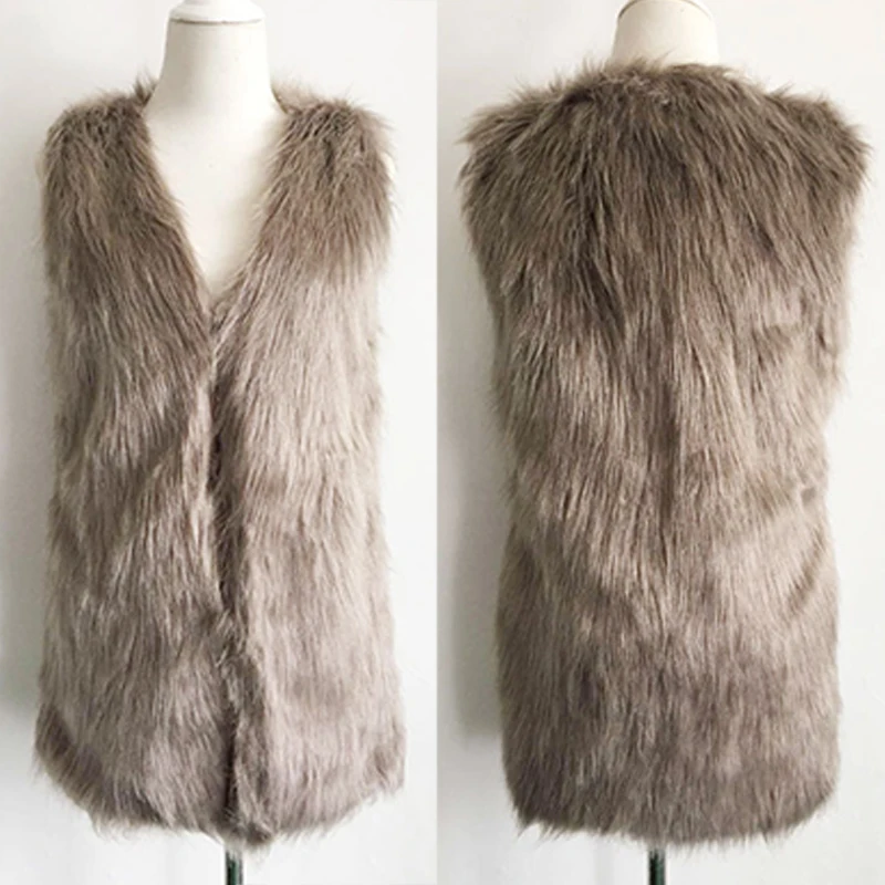 Жилет из искусственного меха, пальто для женщин, зимний теплый пушистый меховой жилет, Женская куртка, однотонная женская верхняя одежда без рукавов