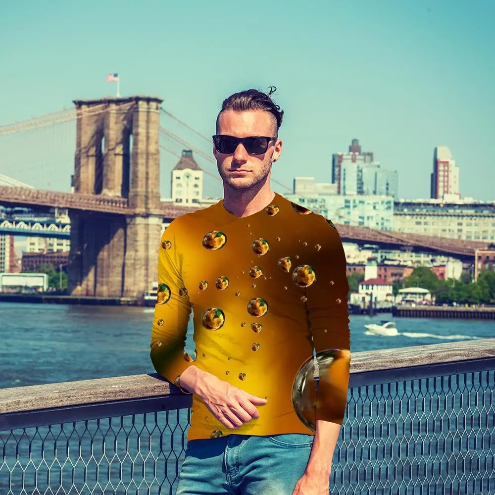 Футболка мужская с длинным рукавом KYKU, летняя футболка с 3D-принтом
