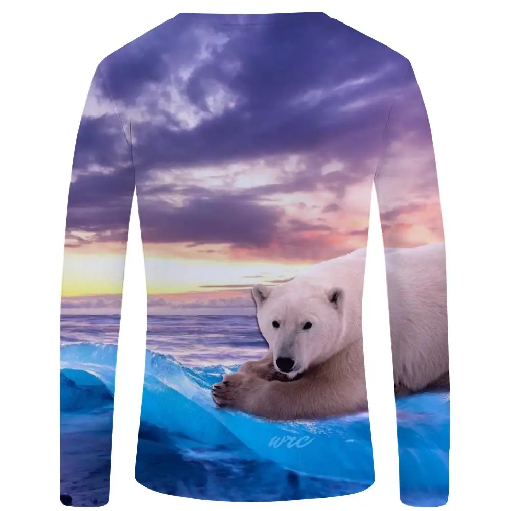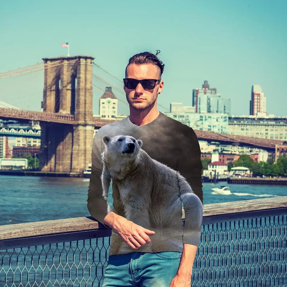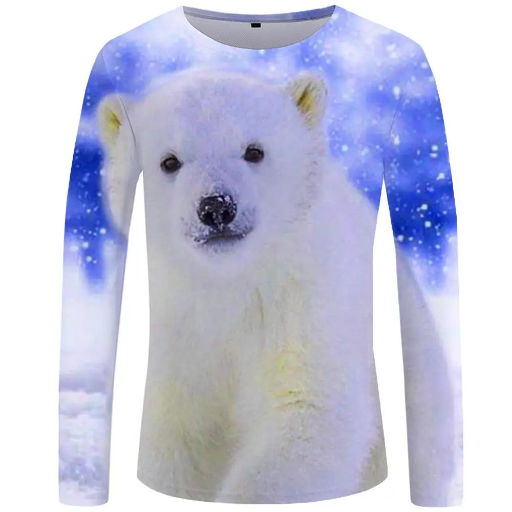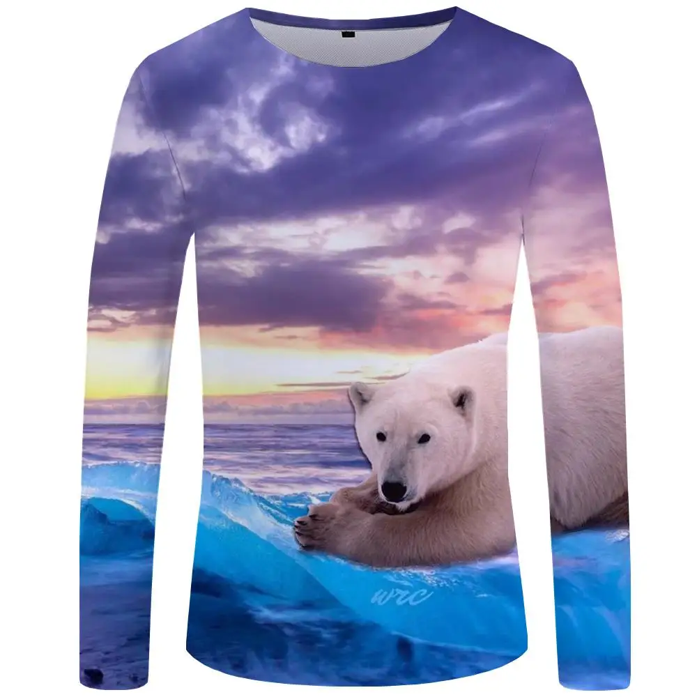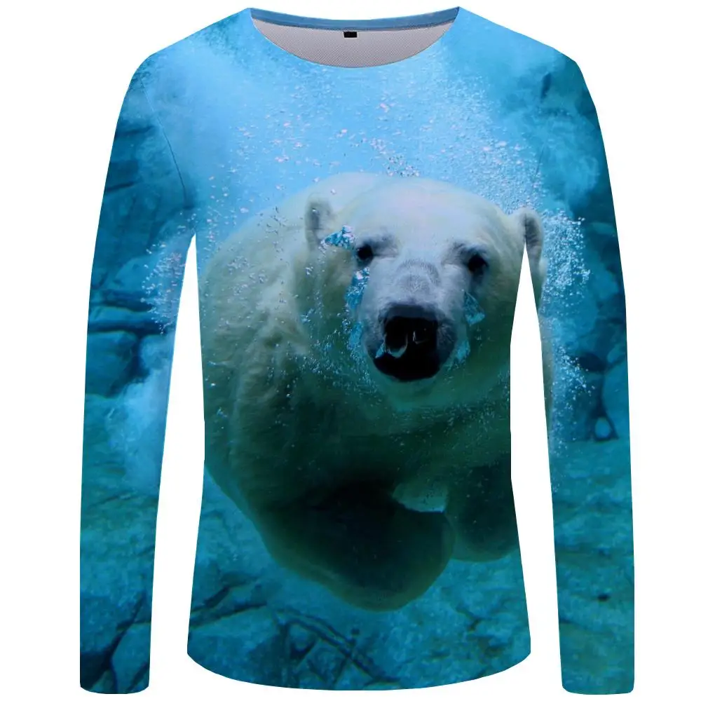Мужская футболка KYKU, черная футболка с длинным рукавом и 3D-принтом медведя, лето 2019