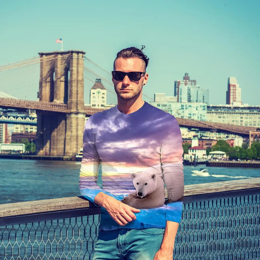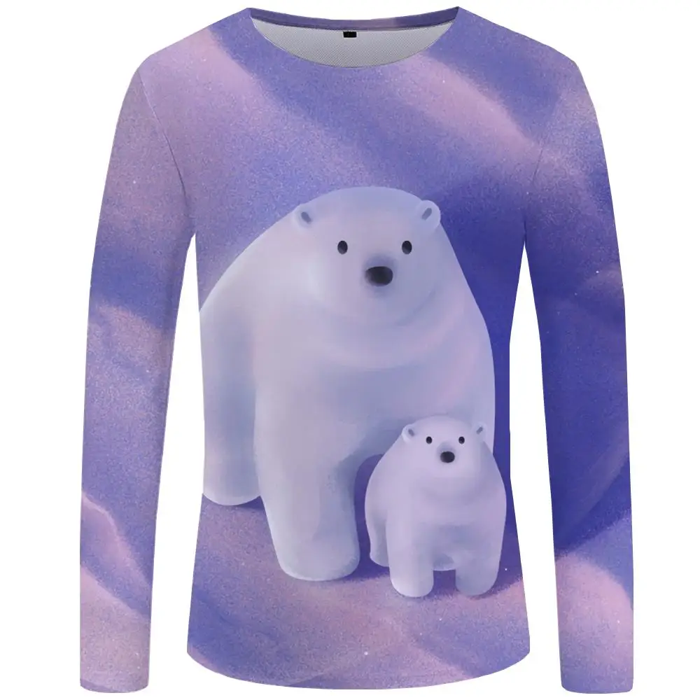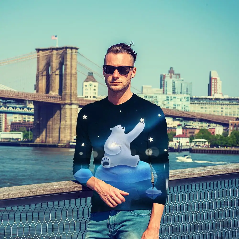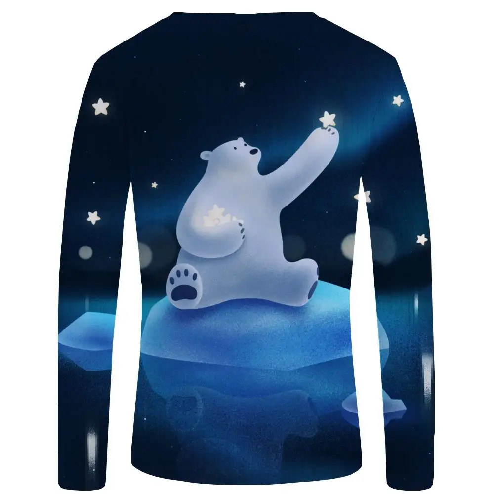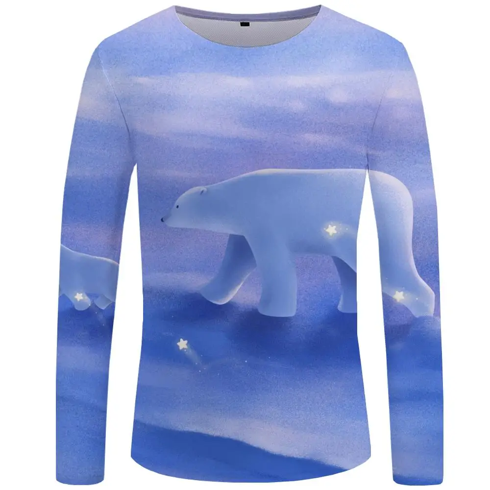 Мужская футболка KYKU, черная футболка с длинным рукавом и 3D-принтом медведя, лето 2019