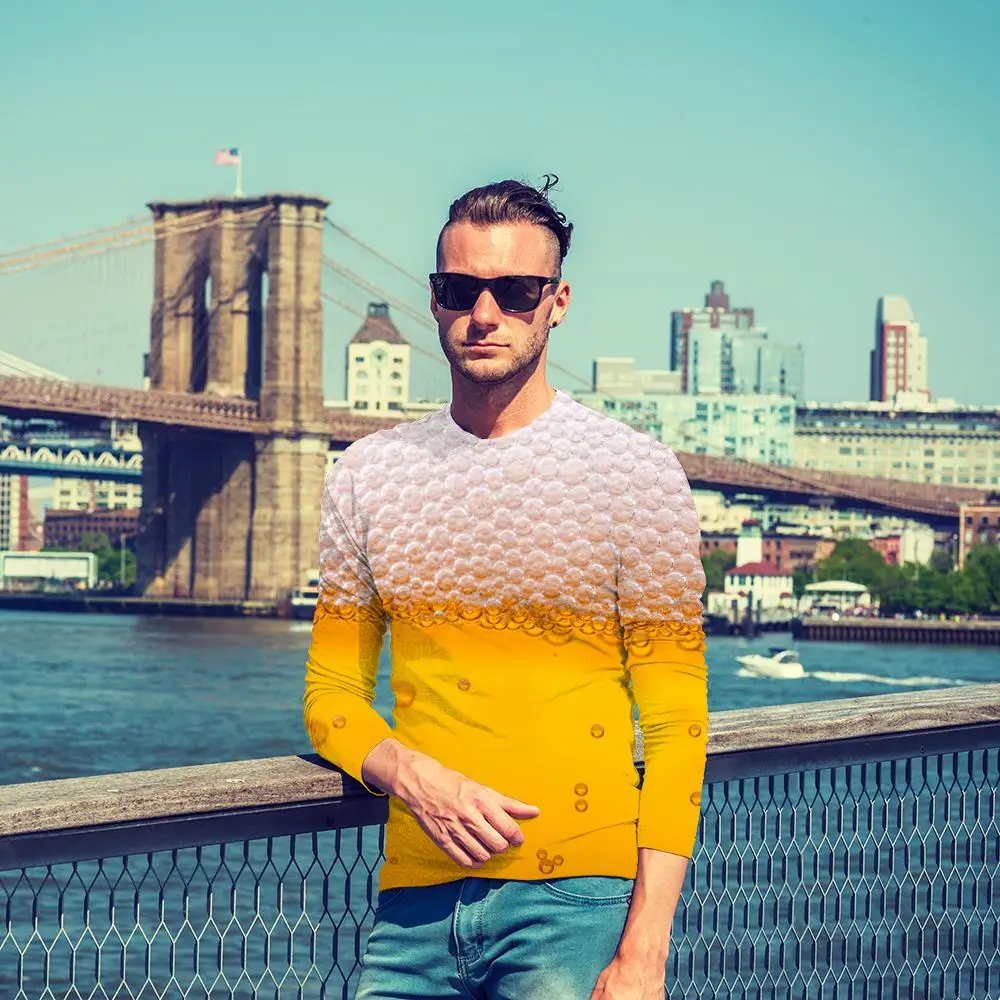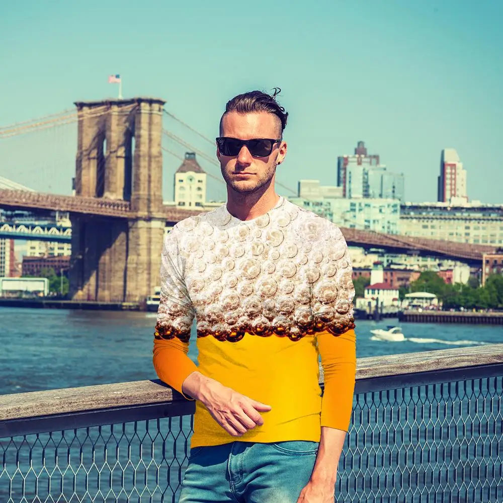 Мужская футболка KYKU, белая футболка с длинным рукавом и 3D-принто...