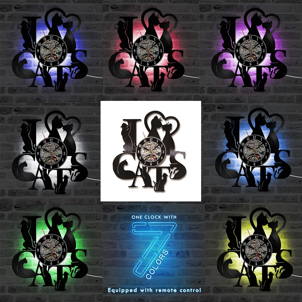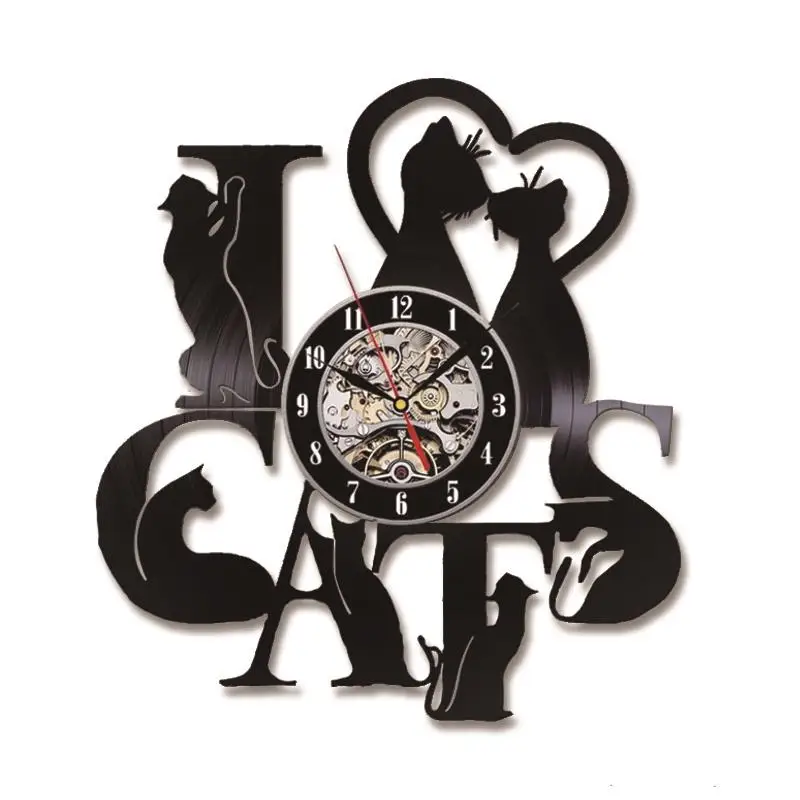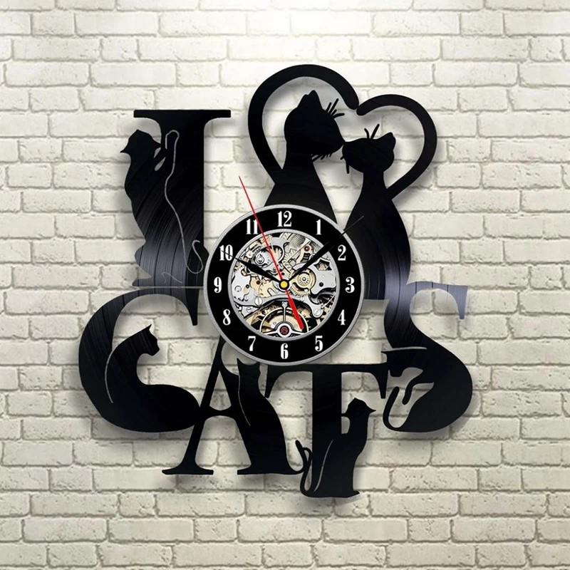 Настенные часы Я люблю кошек, виниловые настенные часы с забавными рисунками котят и черных кошек, в винтажном стиле, подарок для любителей домика
