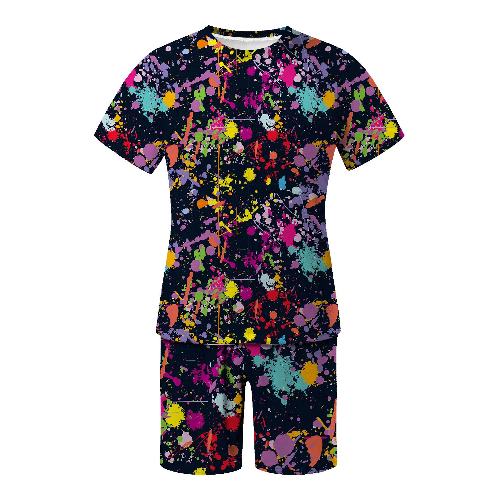 Костюм спортивный мужской с принтом граффити, футболка с круглым вырезом и шорты, дышащий, Модный комплект, лето