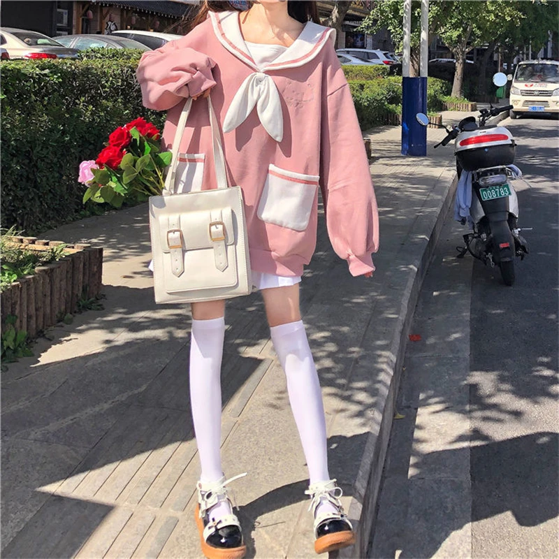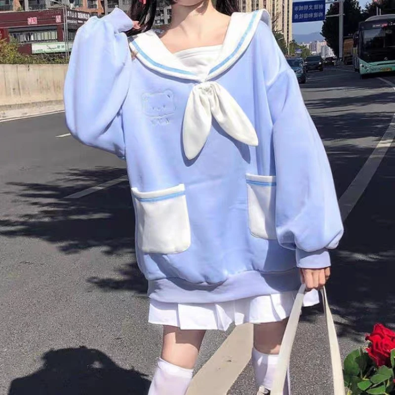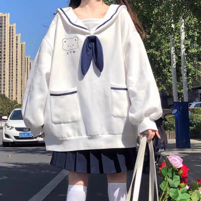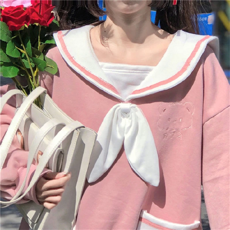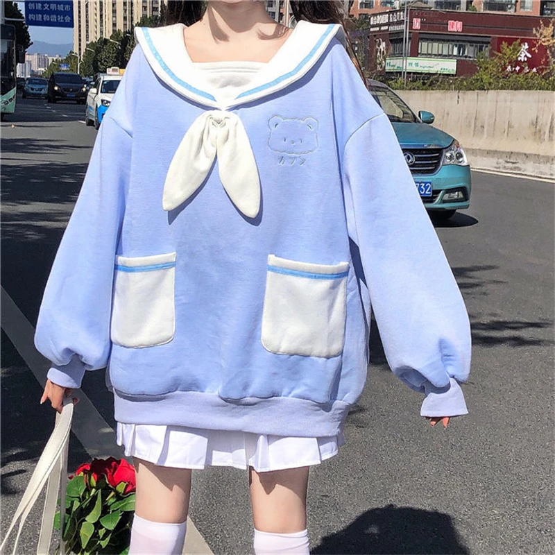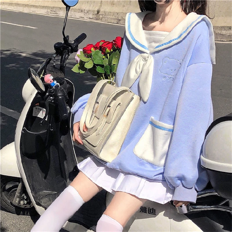 Японский преппи стиль JK Студенческая Женская Повседневная Толстовка бант матросский воротник вышивка медведь кавайные толстовки одежда для лучшей подруги