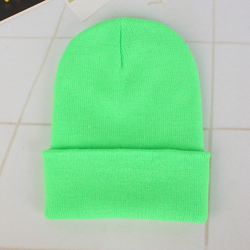 Женскиемужские зимние шапки облегающие вязаные флуоресцентные осенн...