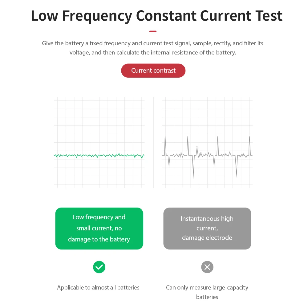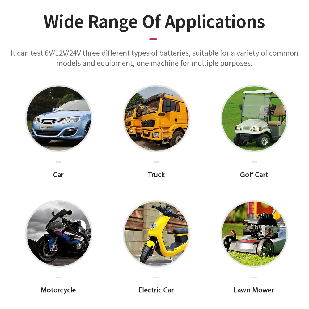 Поддержка нескольких типов батарей: Свинцово-кислотная батарея EPS, стартовый аккумулятор автомобиля, AGM/EFB стартовый аккумулятор, батарея электромобиля, UPS свинцово-кислотная батарея, гелевая батарея