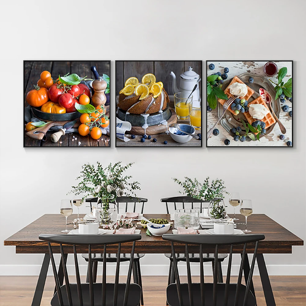 Современный холст искусство 3 панели фруктовый торт продукты постеры печать живопись скандинавские кухни Настенные картины для столовой украшения дома