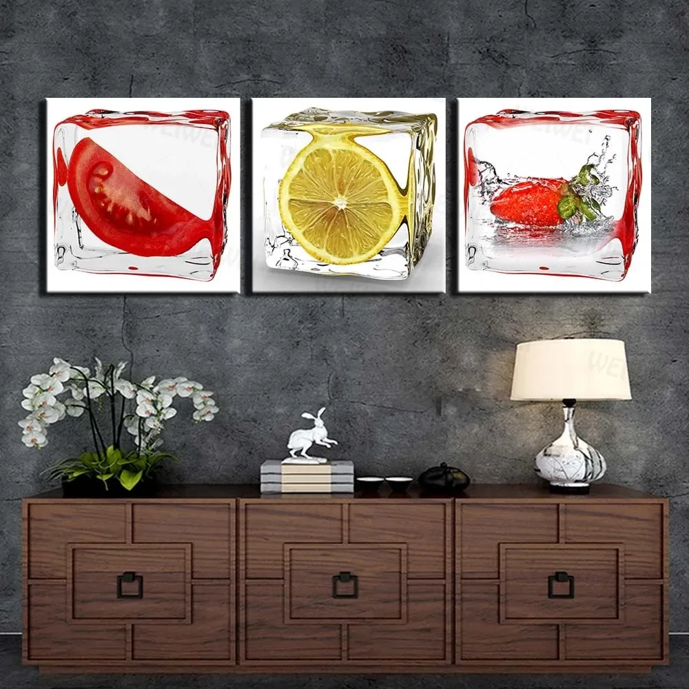 Современное художественное полотно, 3 панели, постеры для фруктов, тортов, продуктов, печать, картина, настенные картины для кухни в скандинавском стиле для столовой, украшение для дома