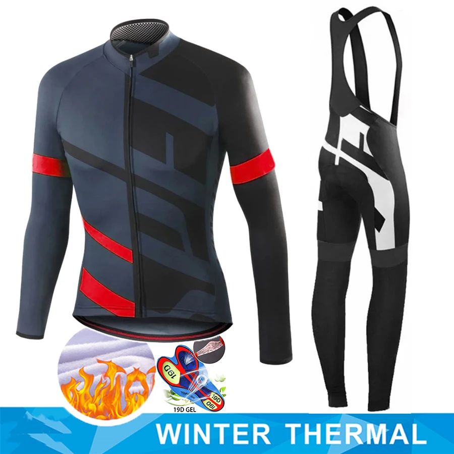 Зимний теплый флисовый комплект трикотажных изделий для езды на вел...