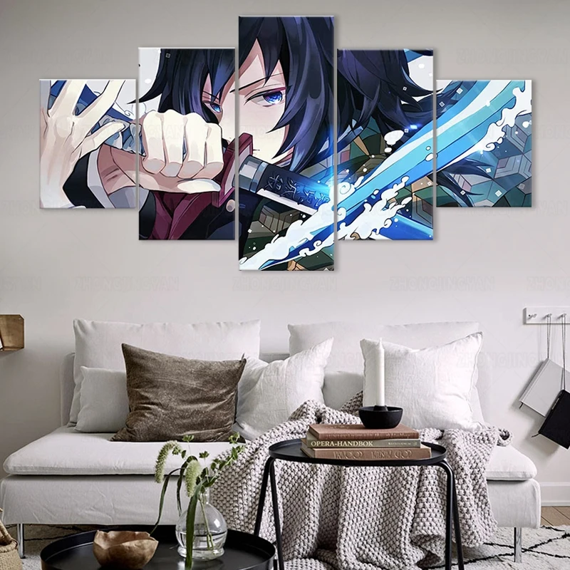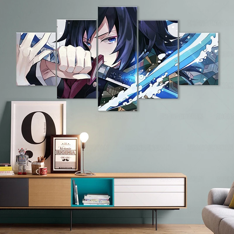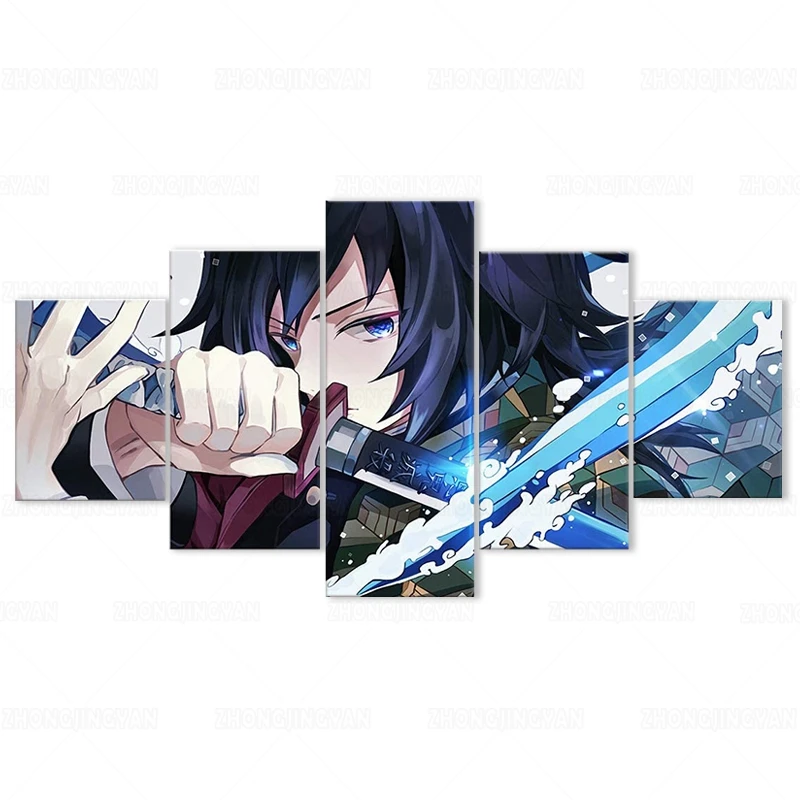 Плакаты из аниме рассекающий демонов, томиока джиюу, 5 шт., настенные постеры из аниме no Yaiba на холсте