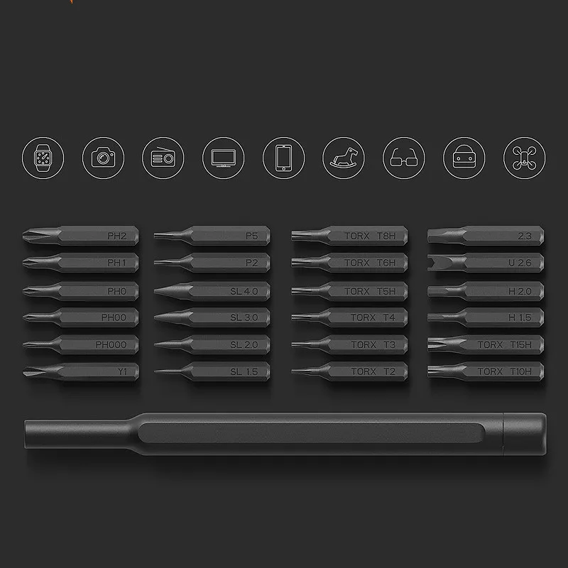 ● 9 видов, 24 шт S2 стальные прецизионные биты, твердость до 60HRC, жесткая и долговечная удовлетворяет потребности основных электронных продуктов и новых мелких бытовых приборов разборки и сборки.
